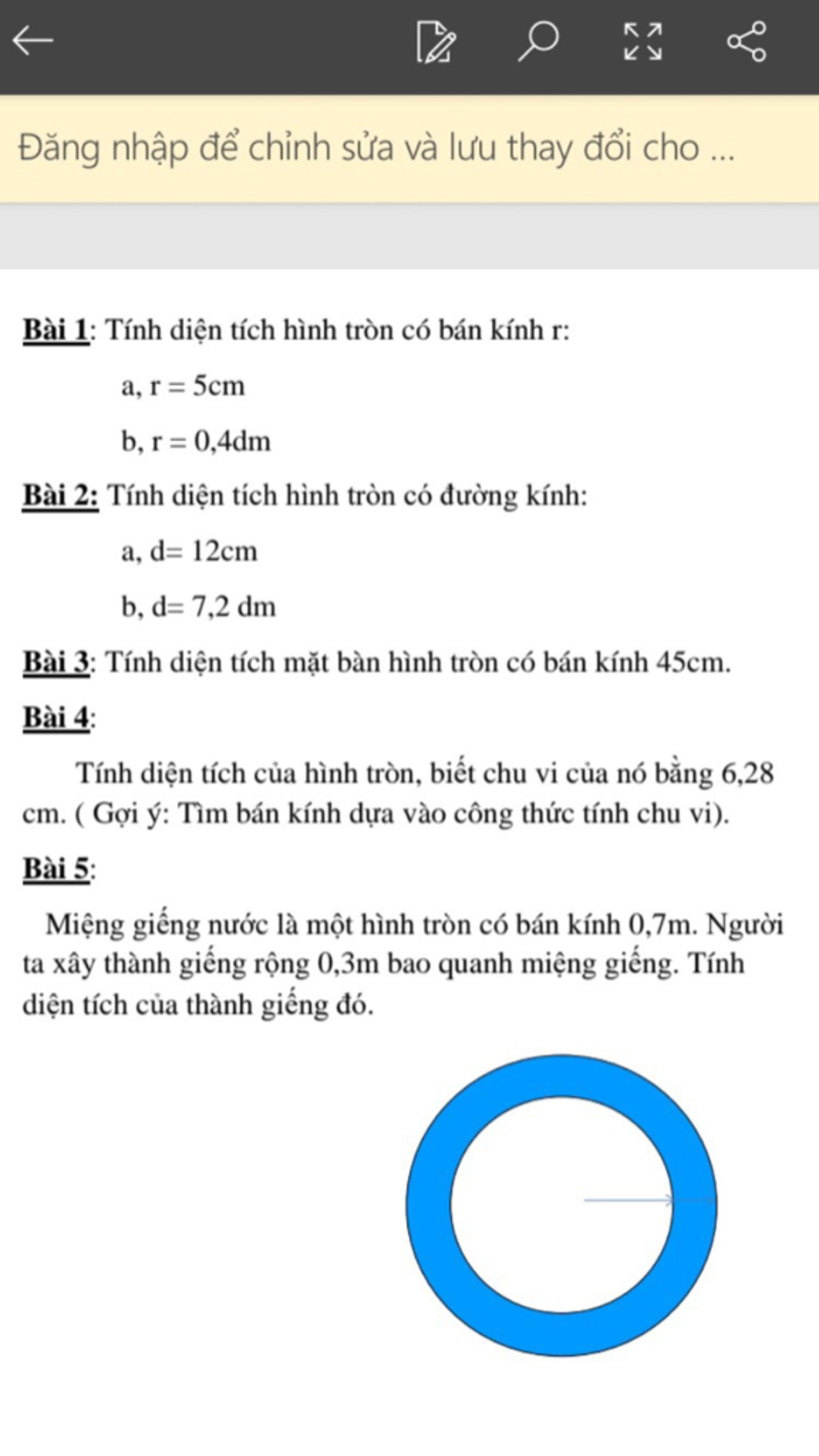 b)diện tích hình tròn là: 0,4x0,4x3,14=0,5024 dm2.