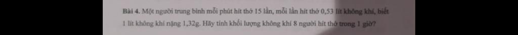 $\text{Khối lượng không khí 8 người hít thở trong 1 giờ là:}$