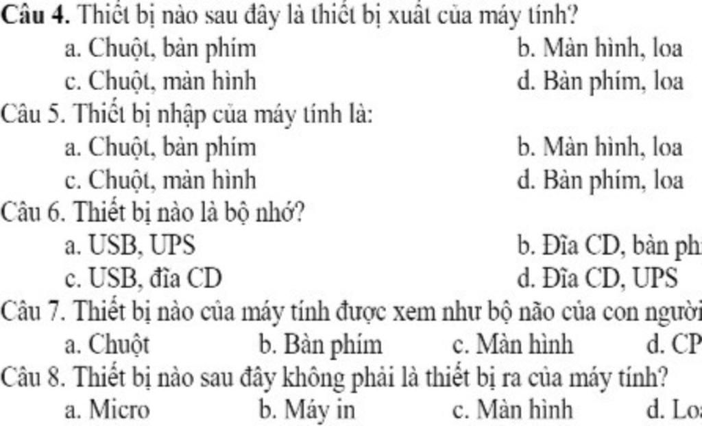 giải thích : vì những cái như: chuột , bàn phím là thiết bị vào