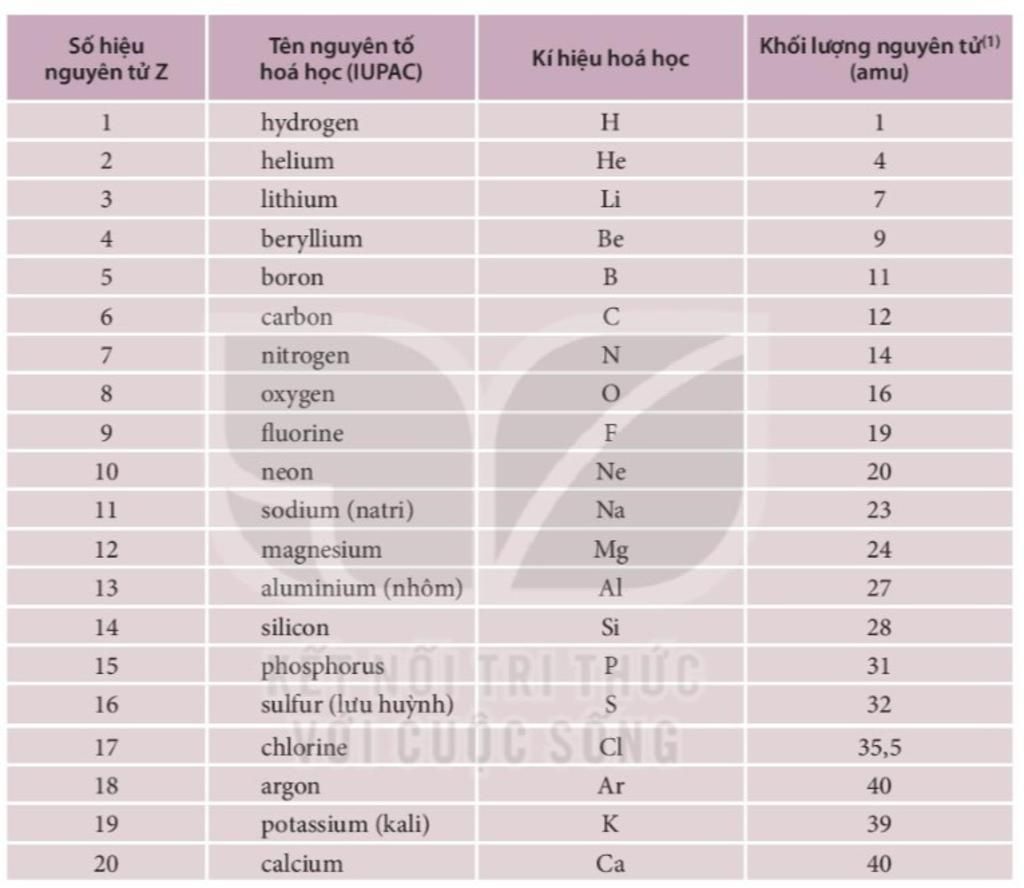 $-$ Nguyên tố $sodium$ $($$natri$$)$ kí hiệu là $Na$$;$ khối lượng là $23$ $amu$