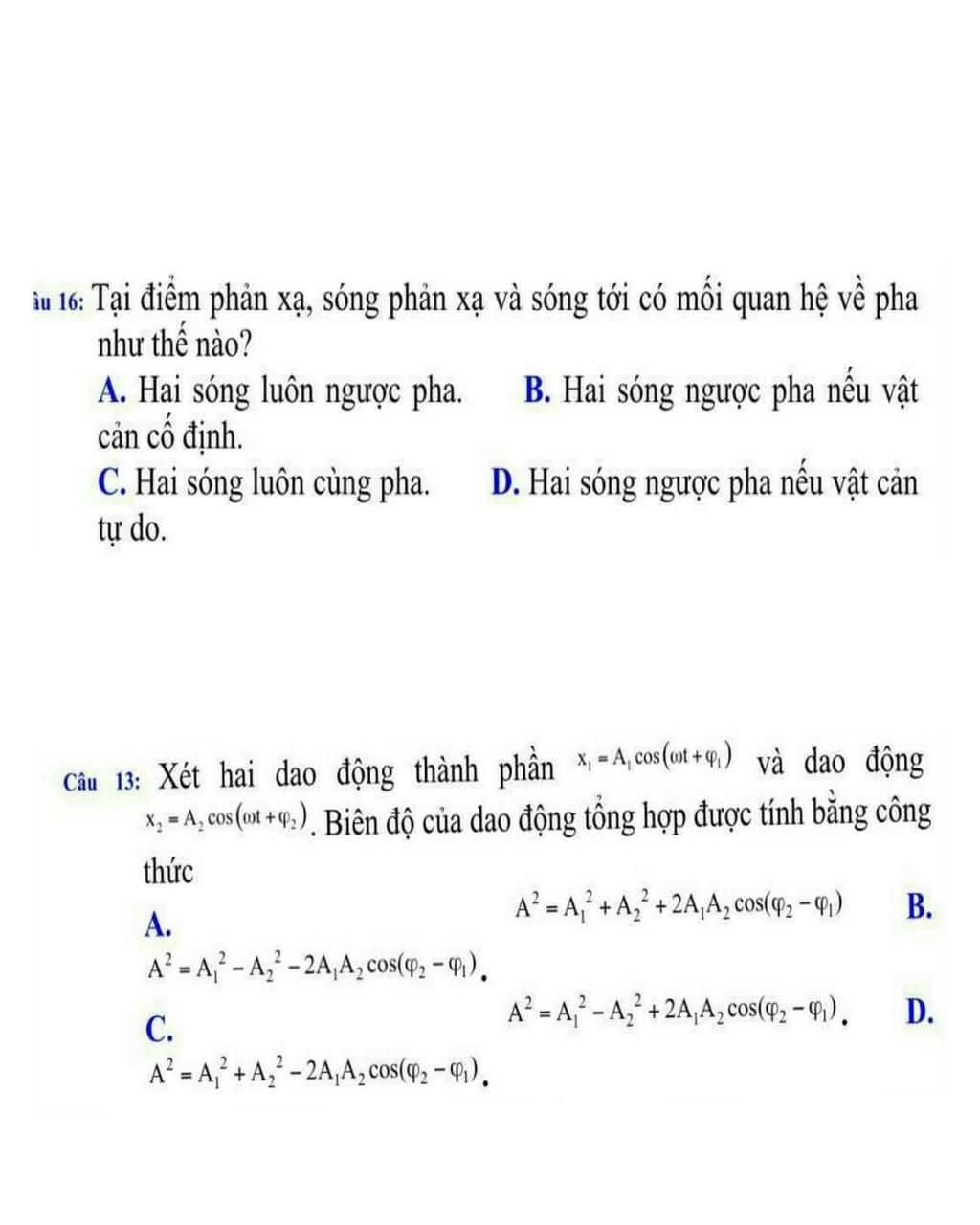 13. Biên độ dao động tổng hợp được tính theo công thức: