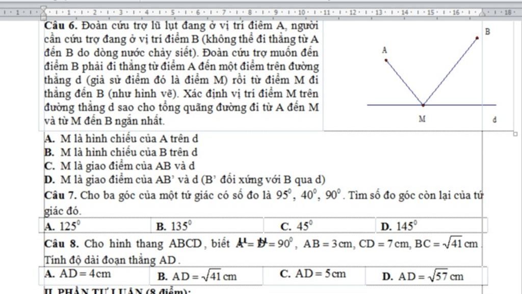 Câu 6. Đoàn cứu trợ lũ lụt đang ở vị trí điêm A, người