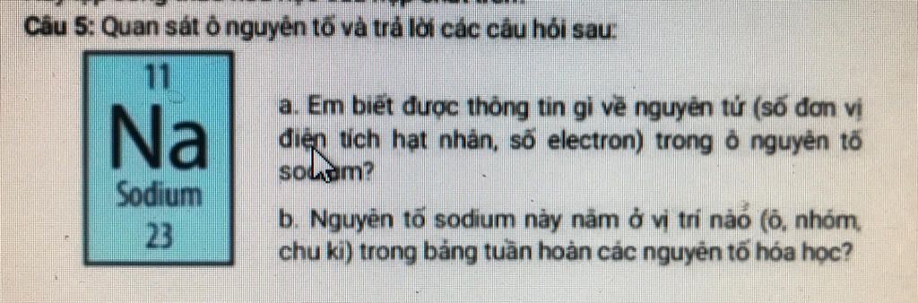 b) nguyên tố sodium nằm ở ô số 11 chu kì 3 nhóm IA