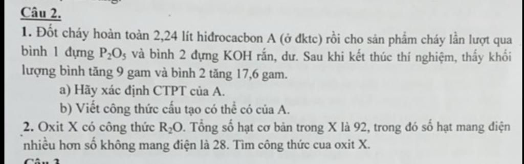 Công thức cấu tạo có thể có của A:
