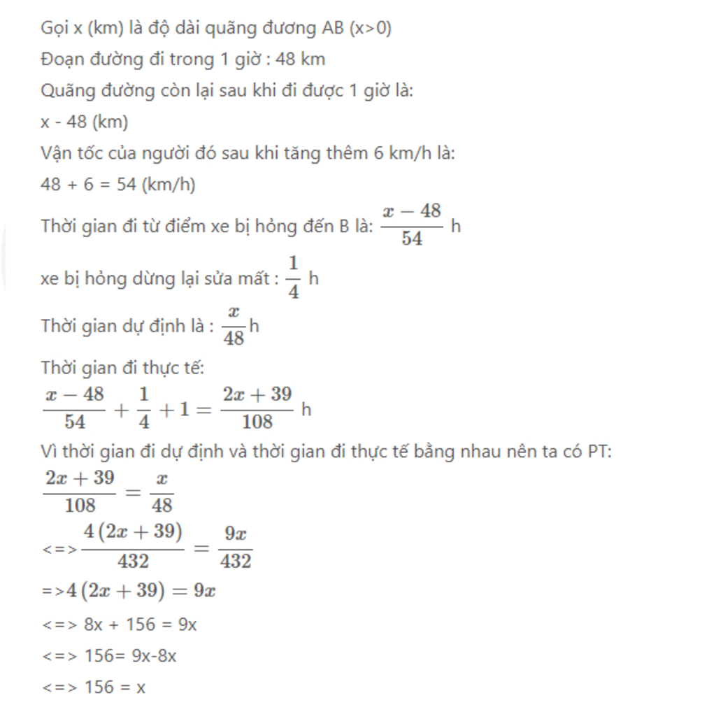 =>Quãng đường còn lại: x-48(km)