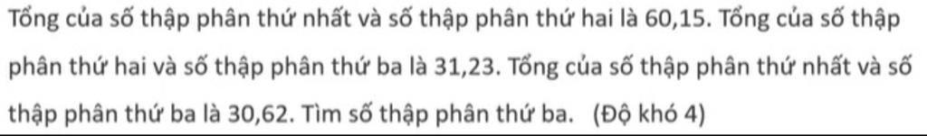STP thứ hai + STP thứ ba = 31,23 (2)