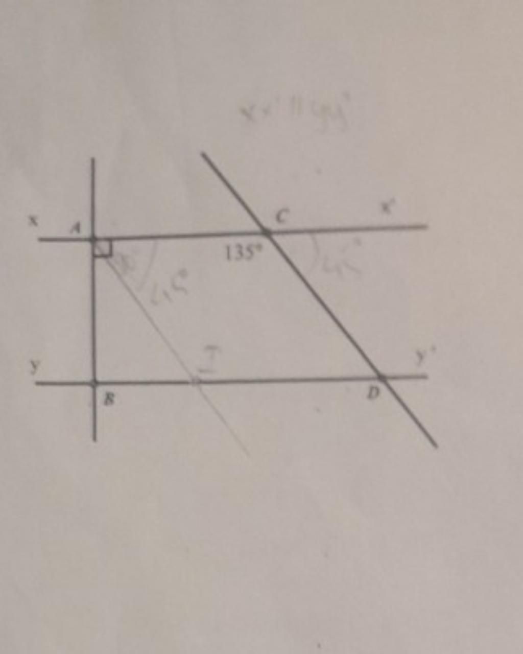 Cho hình vẽ sau, biết xx' // yy' ; góc CAB = 90° ; góc ACD = 135°