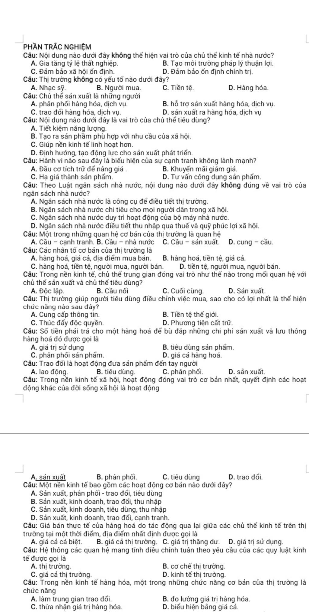 Câu: Thị trường không có yếu tố nào dưới đây?