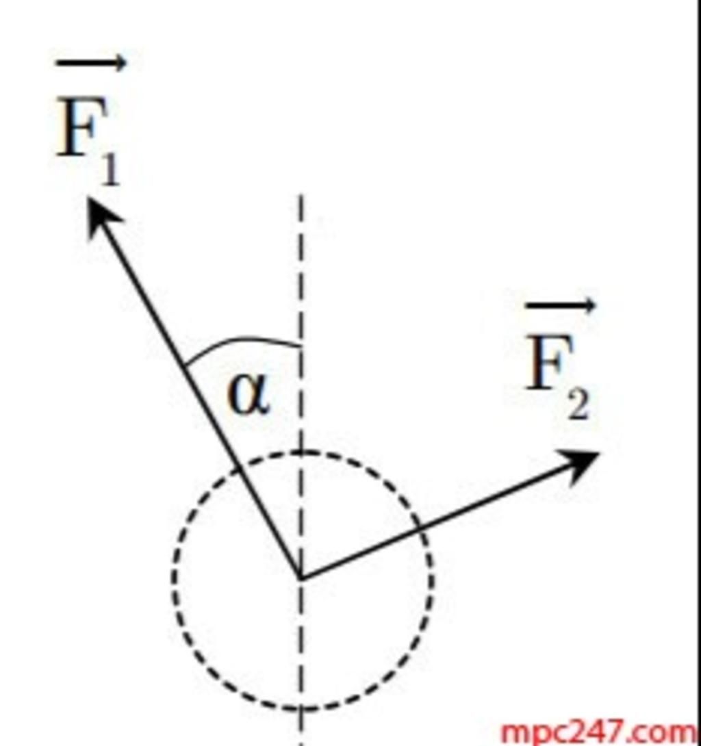 Các lực tác dụng lên vật: `\vec{F_1}+\vec{F_2}+\vec{P}=0`