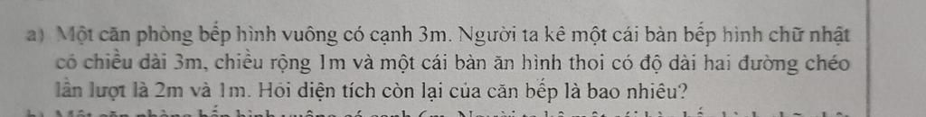 Diện tích còn lại của căn bếp là: