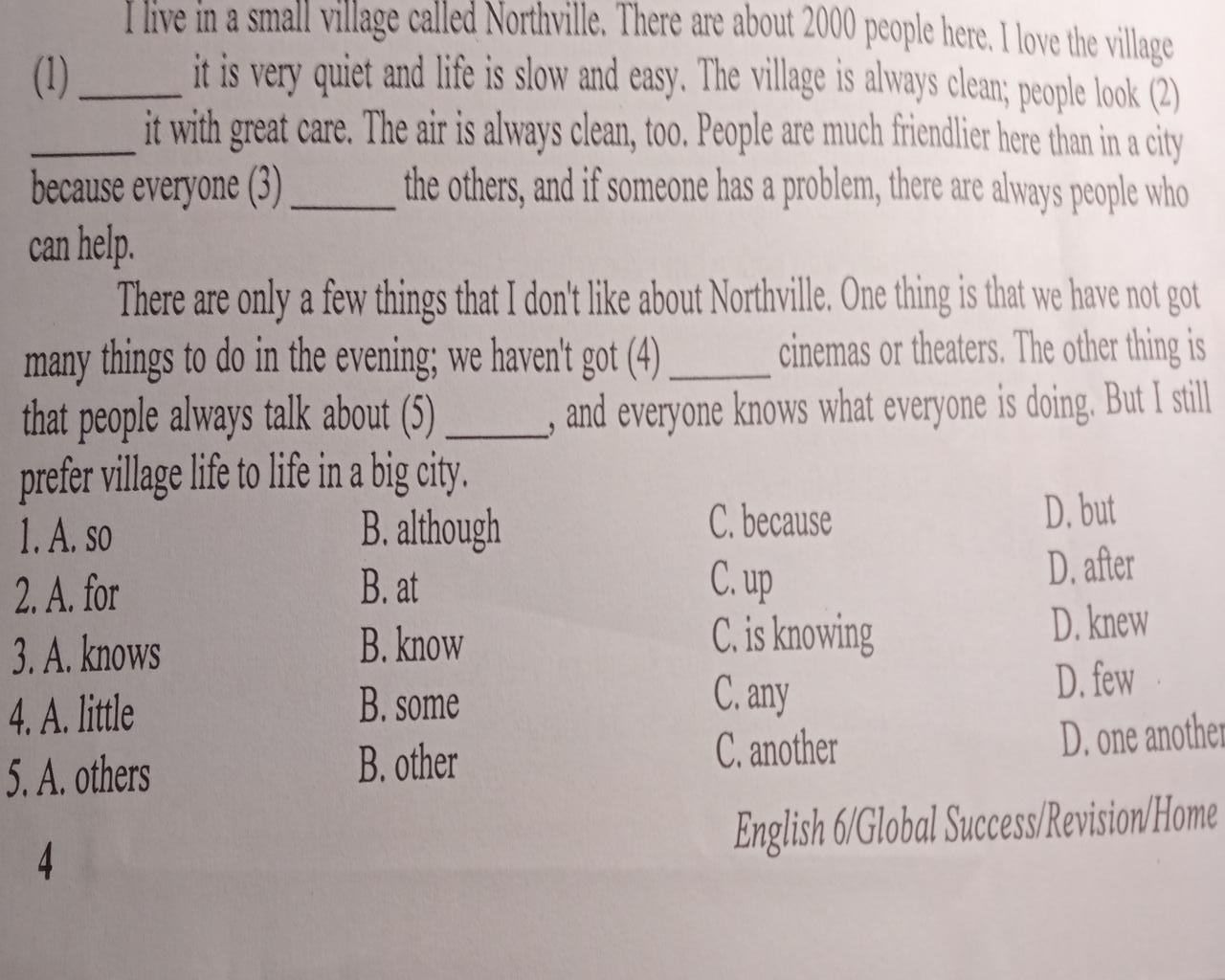 I live in a small village called Northville. There are about 2000 people here. I love the village