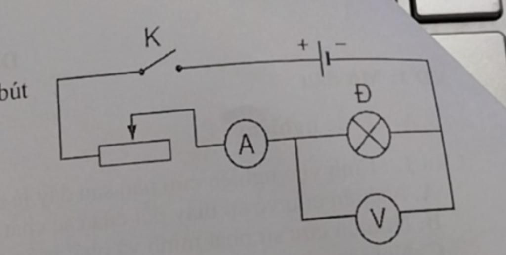 Trong giờ thực hành xác định công suất của các dụng cụ điện, một học sinh đã lắp mạch điện theo sơ đồ như hình bên.