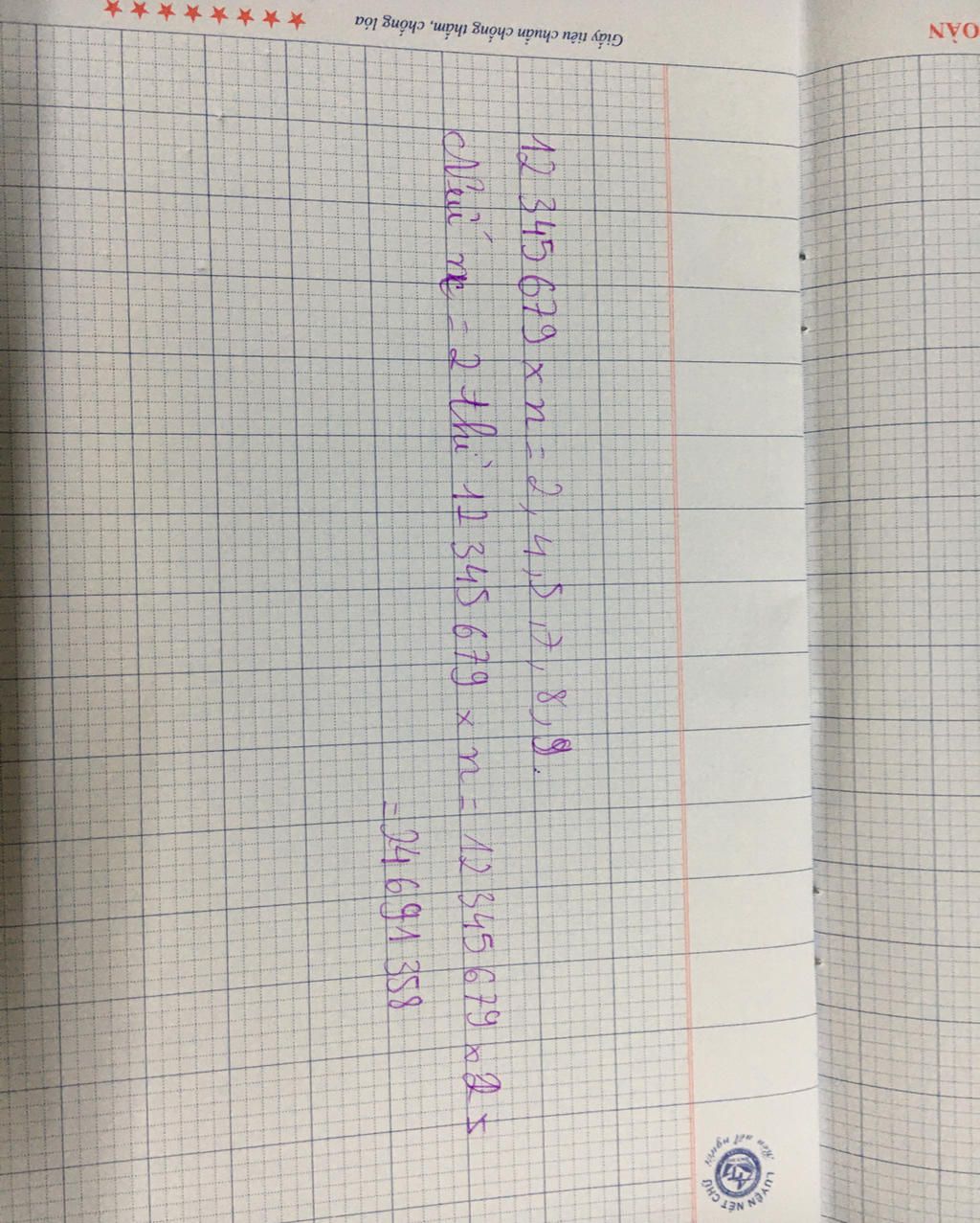 E có nhận xét là 12 345 679 x n = 2 , 4,5,7,8,9 = 24 691 358