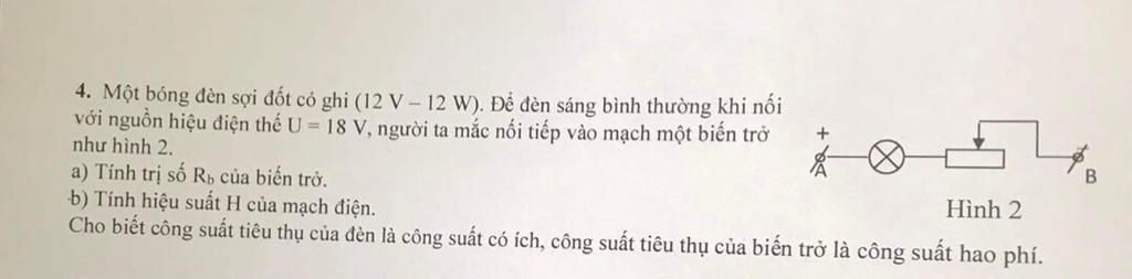 Hiệu điện thế đặt vào 2 đầu biến trở là: