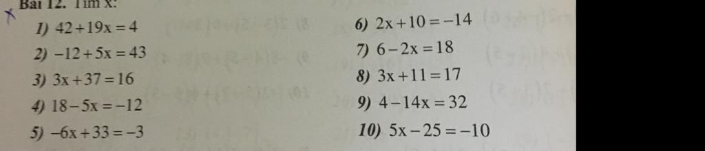 `2)` `-12+5x=43`