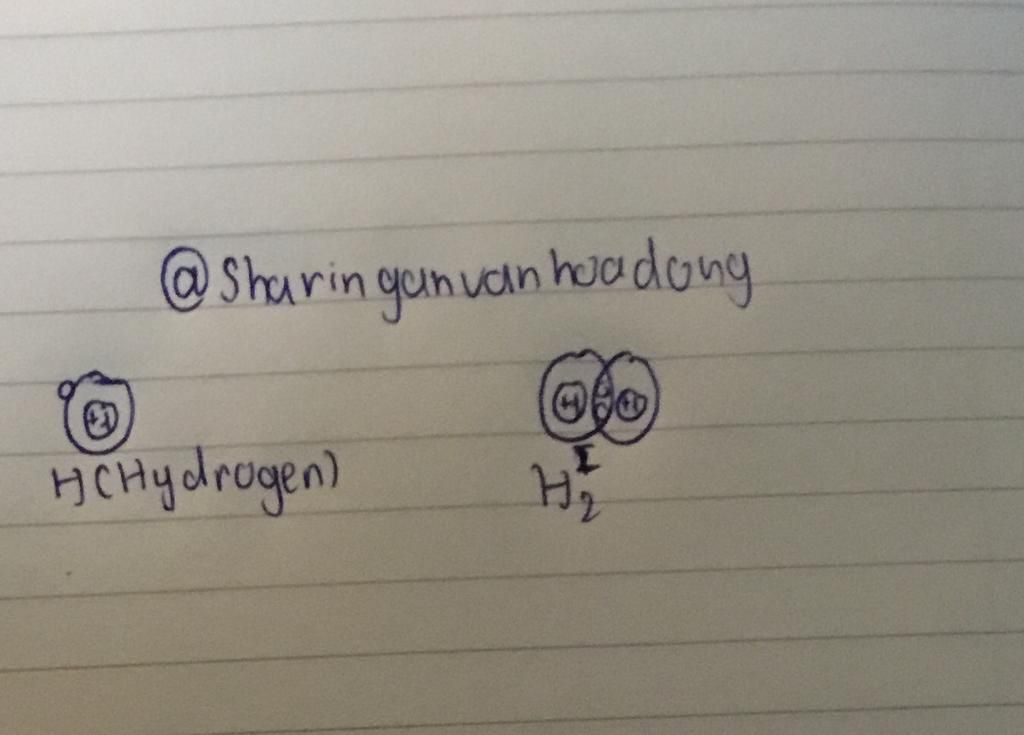 2 nguyên tử `H` có `1e` lớp ngoài cùng, khi 2 nguyên tử `H` liên kết với nhau chúng góp 1 e chung để tạo 1 e dùng chung