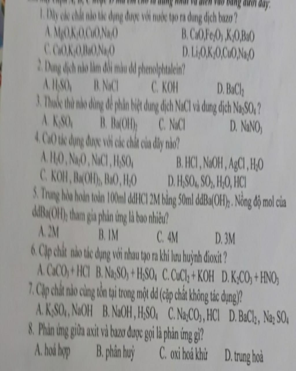 8,D vì phản ứng trung hòa là phản ứng của bazo với axit