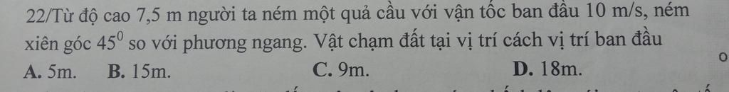 Vật chạm đất tại vị trí cách vị trí ban đầu là nghiệm dương của phương trình: