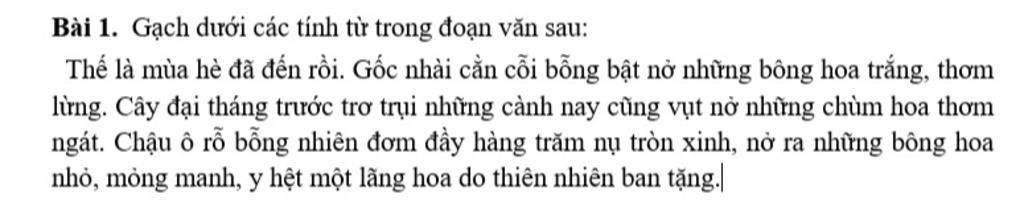 Các tính từ có trong đoạn văn : cằn cỗi ; trắng ; thơm lừng ; trơ trụi ; thơm ngát ; tròn ; xinh ; nhỏ ; mỏng manh