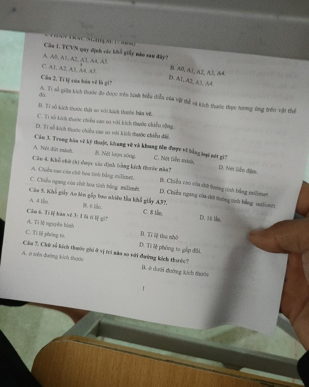 Câu I. TCVN quy định các khổ giấy nào sau đây?