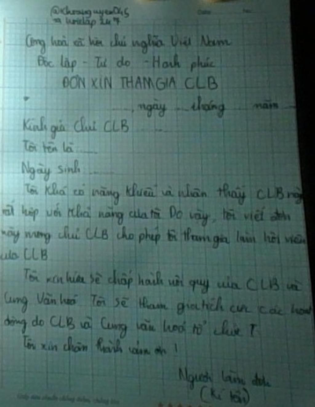ĐƠN XIN THAM GIA CÂU LẠC BỘ HÂM MỘ CA SĨ