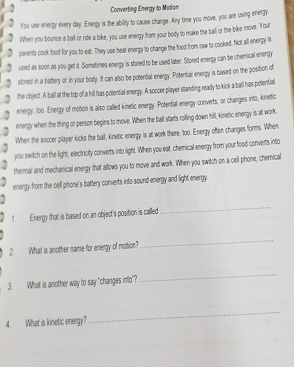 `1.` Energy that is based on an object's position is called Potential energy