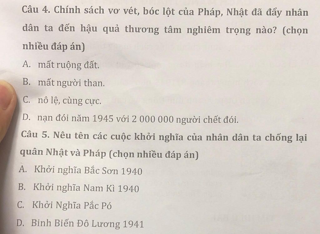 Nêu tên các cuộc khỏi nghĩa của nhân dân ta chống lại quân Nhật và Pháp `?`