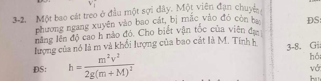 Gọi $v'$ là vận tốc của bao cát ngay sau khi viên đạn xuyên vào