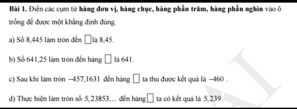 𝘼) Hàng phần trăm