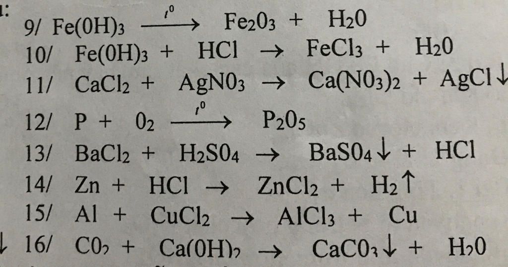 10)\,Fe{(OH)_3} + 3HCl \to FeC{l_3} + 3{H_2}O\\