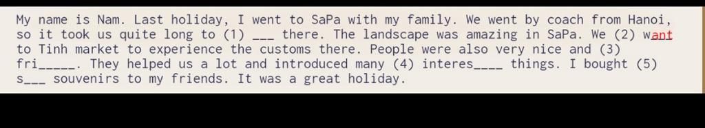 Vì souvenirs là số nhiều mà từ gợi ý là s_ _ _ nên mình nghĩ vậy~~~
