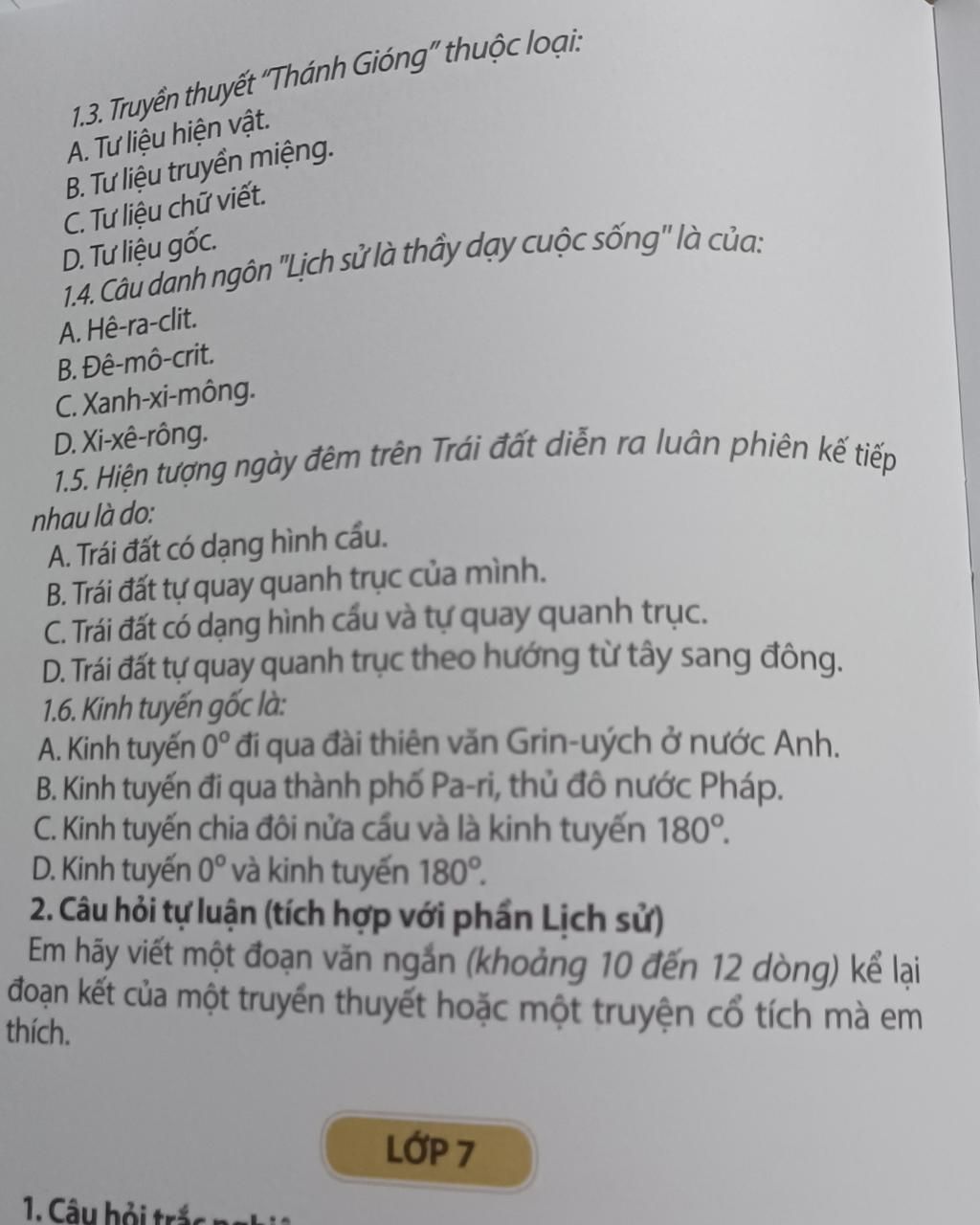 1.4: Câu danh ngôn "Lịch sử là thầy dạy cuộc sống" là của Xi-xê-rông