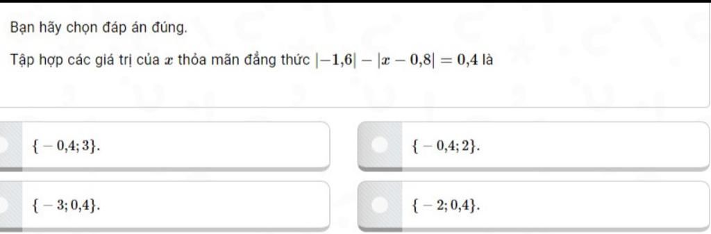 `<=>1,6-|x-0,8|=0,4`