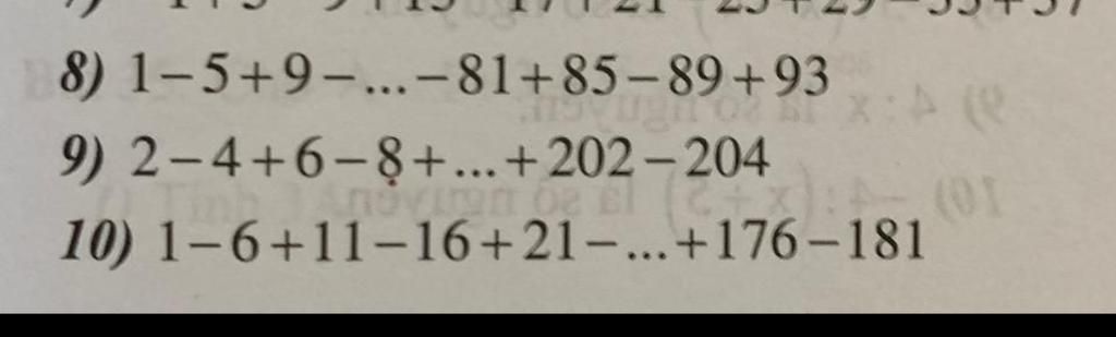 `10, 1 -6 + 11 - 16 + 21 - ... + 176 - 181`