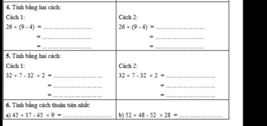 Bổ sung câu `6b` : `52xx48-52xx28` `=52xx(48-28)` `=52xx20` `=1040`
