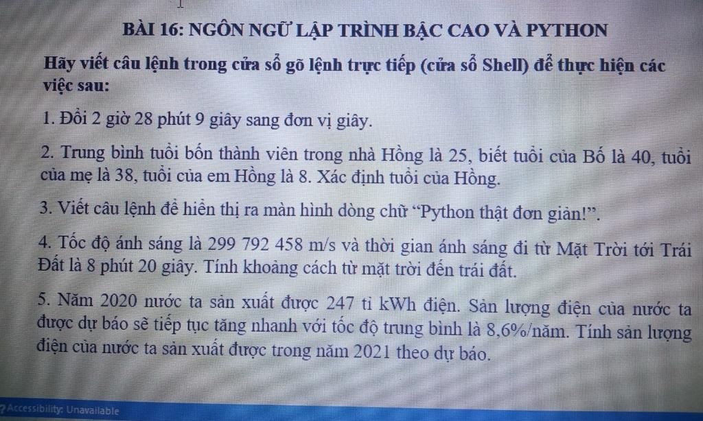 Hãy viết câu lệnh trong cửa sổ gõ lệnh trực tiếp (cửa sổ Shell) để thực hiện các