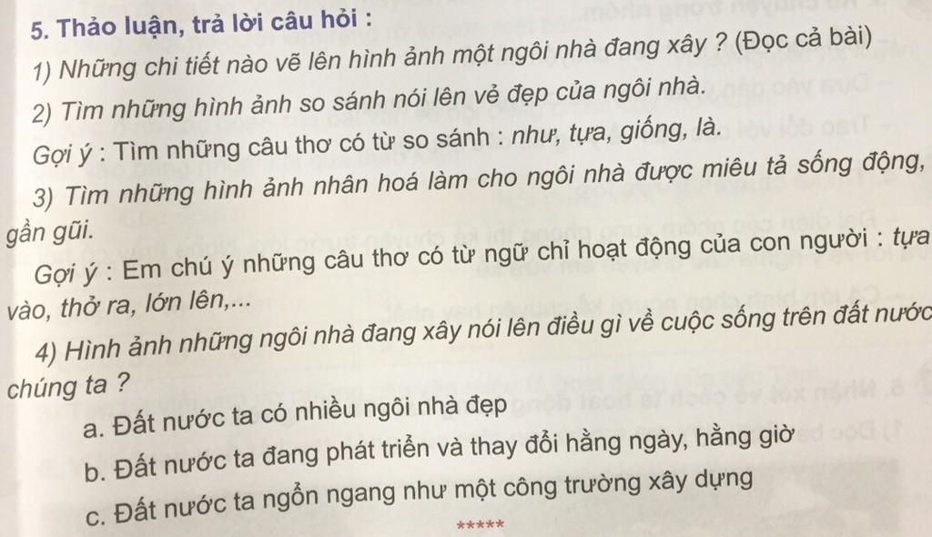 4/ Hình ảnh những ngôi nhà đang xây nói lên điều gì về cuộc sống trên đất nước chúng ta .