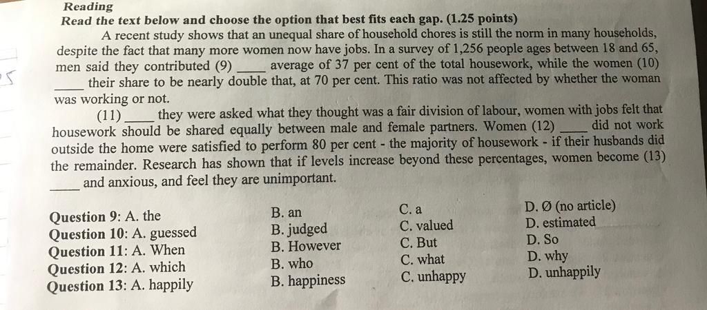 Read the text below and choose the option that best fits each gap. (1.25 points)
