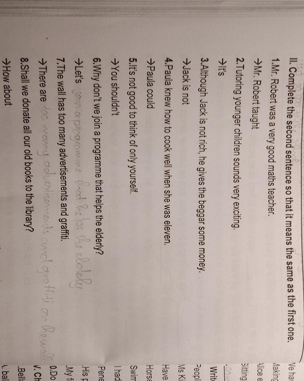II. Complete the second sentence so that it means the same as the first one.
