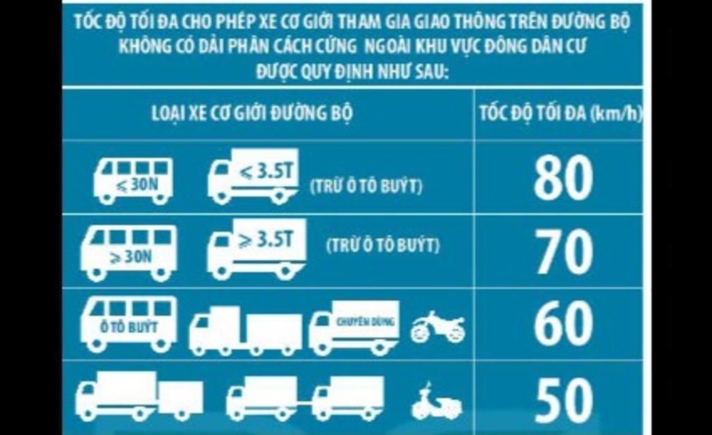 + Xe mô tô phân khối lớn, xe chuyên dụng, xe buýt có tốc độ tối đa là 60 km/h