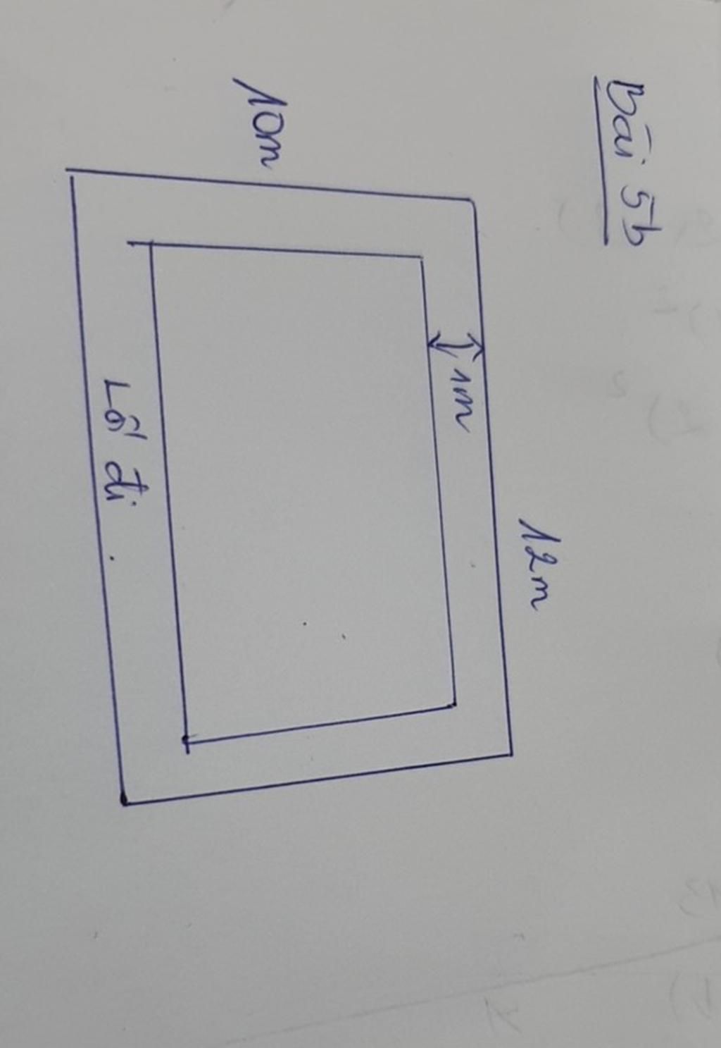b) Phần đất còn lại sau khi làm lối đi có chiều dài là: $12 - 1 - 1 = 10\left( m \right)$ và có chiều rộng là: $10 - 1 - 1 = 8\left( m \right)$