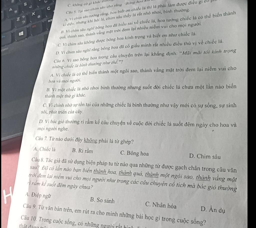 - Thật mà! Cuộc đời tôi rất bình thường. Ngày nhỏ, tôi là một búp non. Tôi lớn dần lên thành một chiếc lá và cứ là chiếc lá như thế cho đến bây giờ.