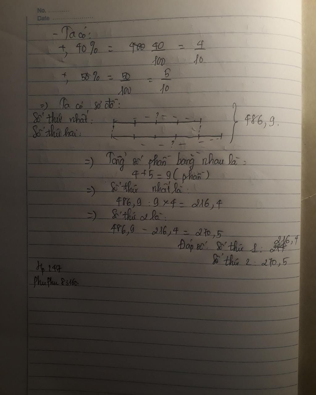 Vậy hai số cần tìm đó là : số thứ nhất : 216,4