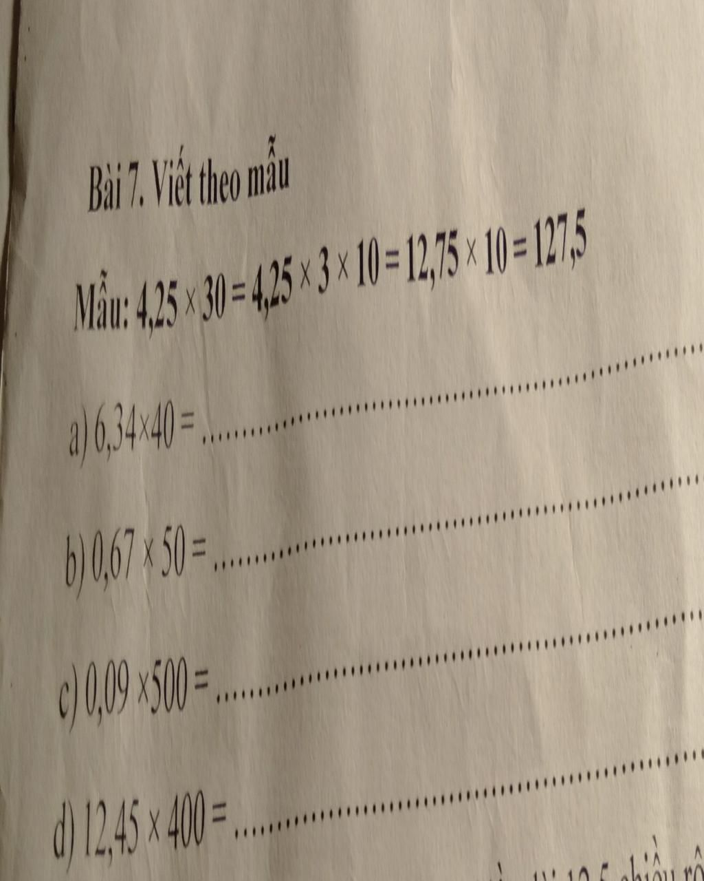 `d) 12,45 × 400 = 12,45 × 4 × 100 = 49,8 × 100 = 4980`