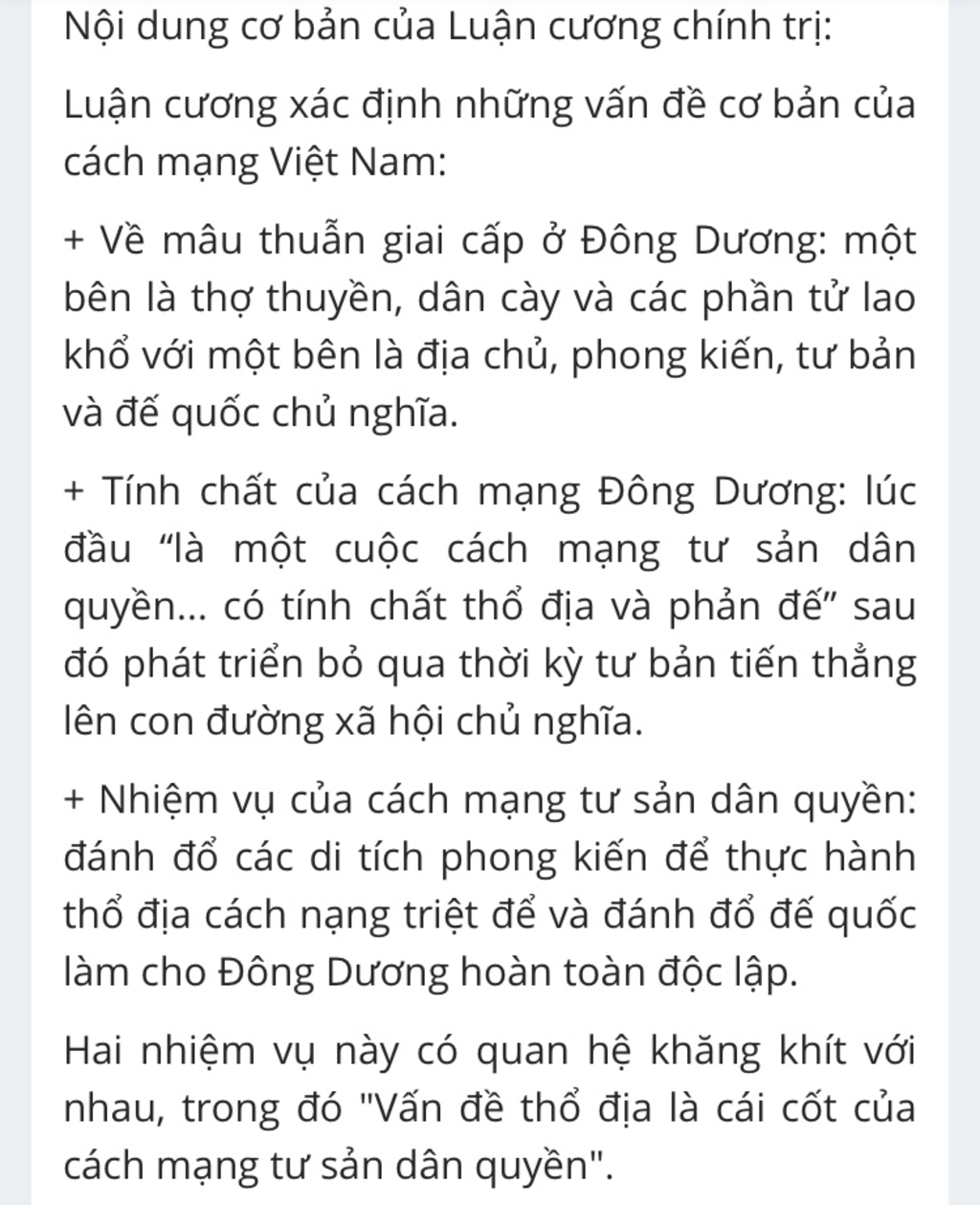 Luận cương xác định những vấn đề cơ bản của cách mạng Việt Nam: