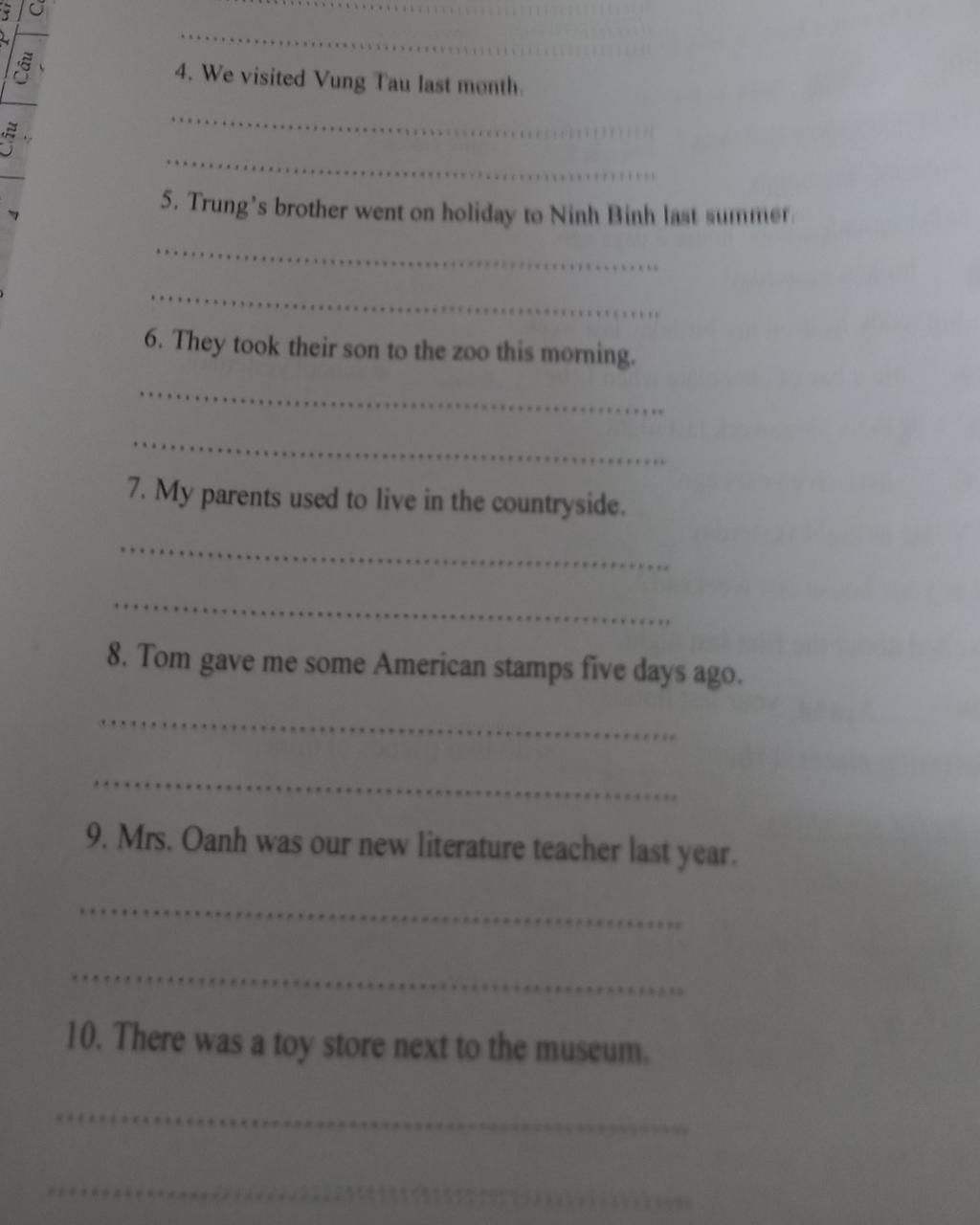 `9.` `( − )` Mrs.Oanh wasn't our new literature teacher last year