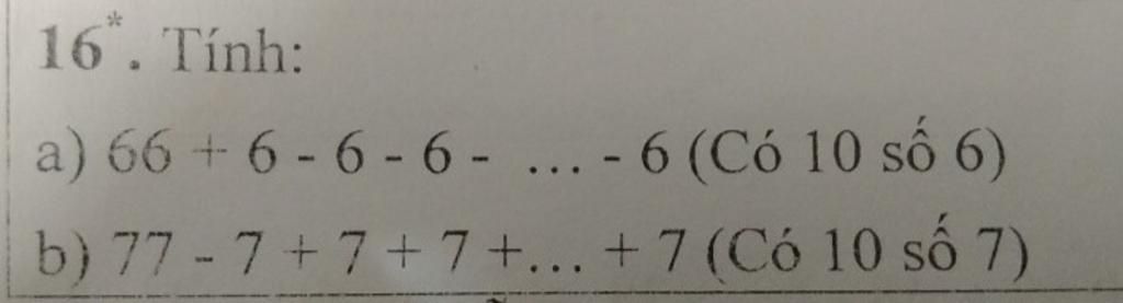 `a)66+6-6-6-...-6` (Có `10` số `6`)