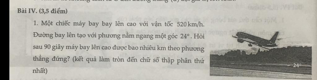 $\Rightarrow BC=AB \sin 24^\circ \approx 5288 (m) \approx 5,3(km).$