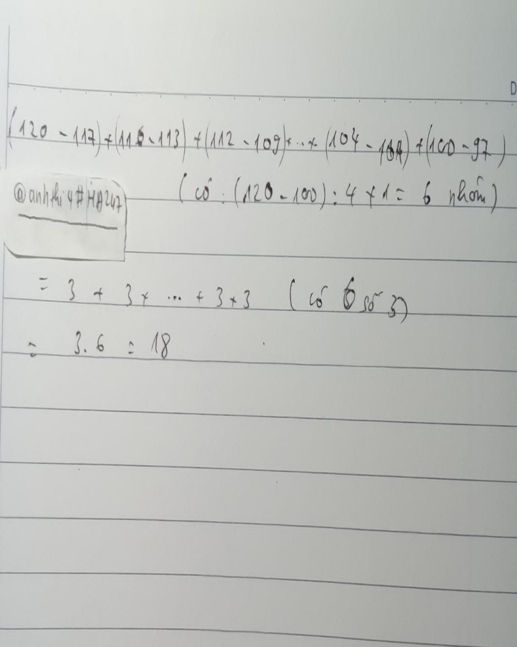 `= 3 + 3 + ... + 3 + 3` (có `(120-100):4+1=6` số `)`