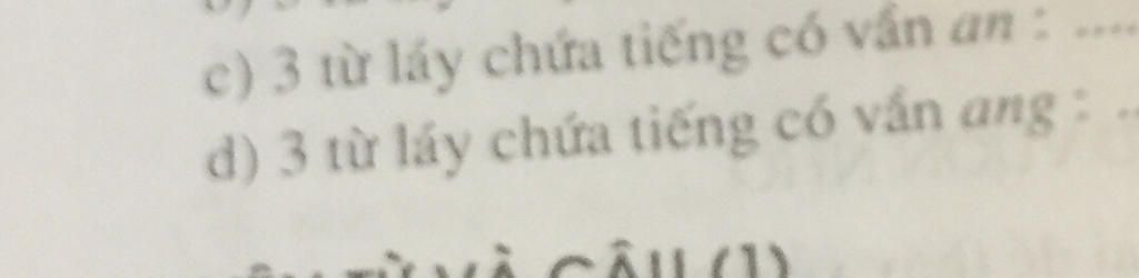 3 từ láy chứa tiếng có vần an : Lan can , chán nản , lăn tan .